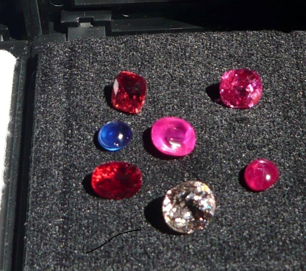 私が集めたいろいろな宝石達。大体2006年から2010年の間に仕入れました。スピネルは当時は良質のもので 1カラット3万円から5万円と言うところ。 2ctは18万―25万。3ct100万円。2022年は大体5倍から10倍になりました。 スピネルは2ct以上は非常に少ないです。2022年では0.5ctとか0.3ctの米粒みたいな石が2-4万円で売られています。 びっくりします。 スピネルは大体が原石で1ct未満がほとんどらしいです。rubylandには1ct以上が非常にたくさんあったので 当時は全然知らなかった。 ルビー、スピネル、サファイアいろいろ買いました。私は本来は青色の石が好きでしたが、ほとんどの人間は 他人は赤色が好きなので 赤色を仕入れました。まあ投資と考えていましたので。まあサファイアは加熱できれいになります。ルビーは加熱しても原則はきれいになりません。 黒い色が一か所に集合して、、全体が明るくなるのです。ということはテーブルの真ん中が綺麗な石が良い石という事になります。 濃い石ほどクロムが多いので、結晶が乱れて 、透明になりにくい、インクルが入りやすいという事になります。