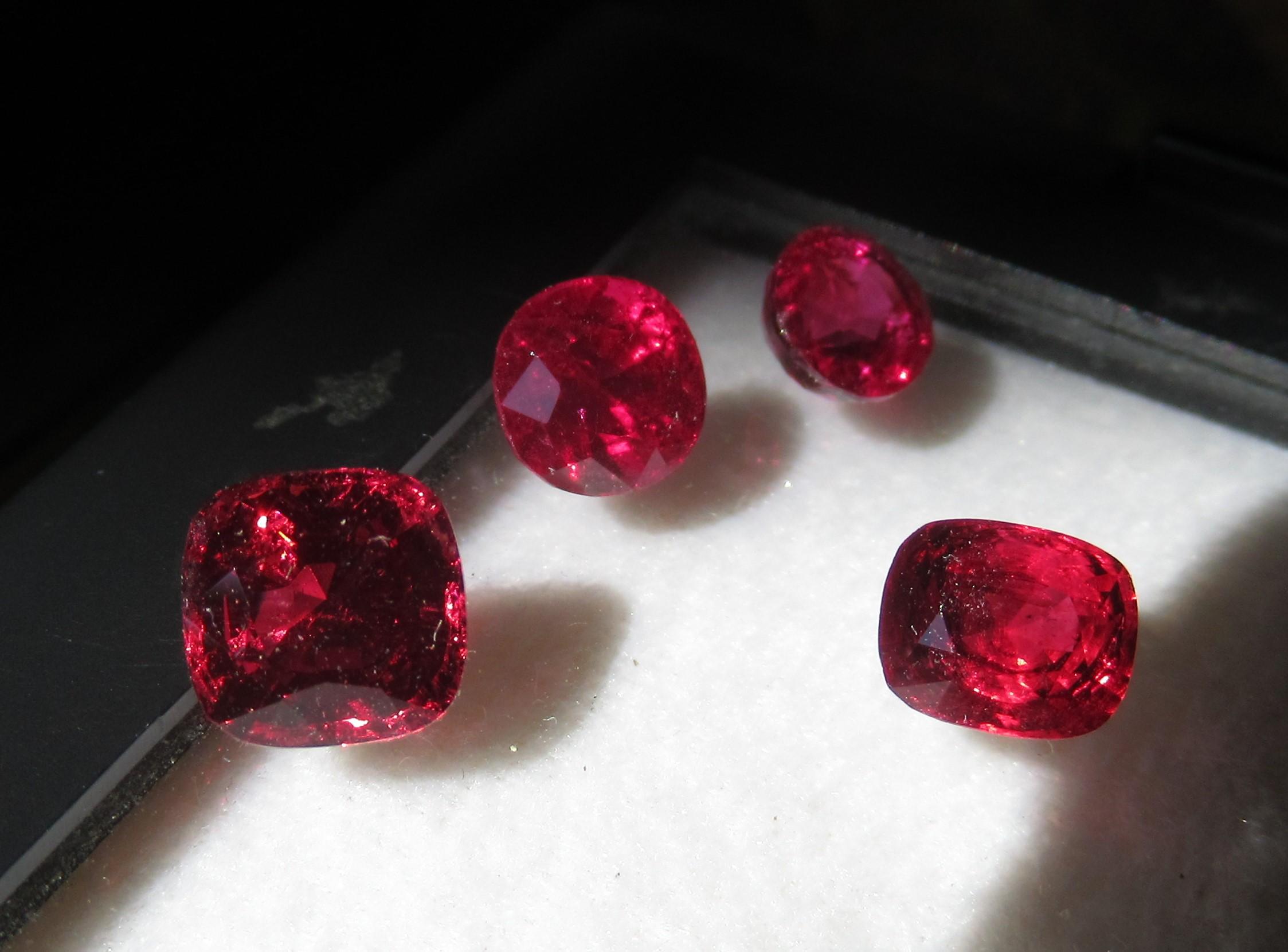 非加熱のルビーとスピネルです。見比べてください。